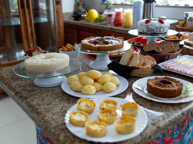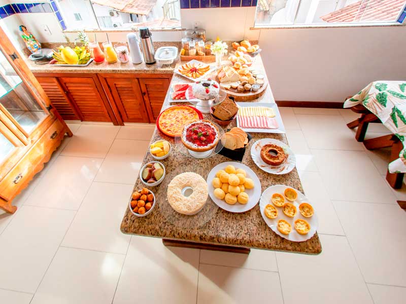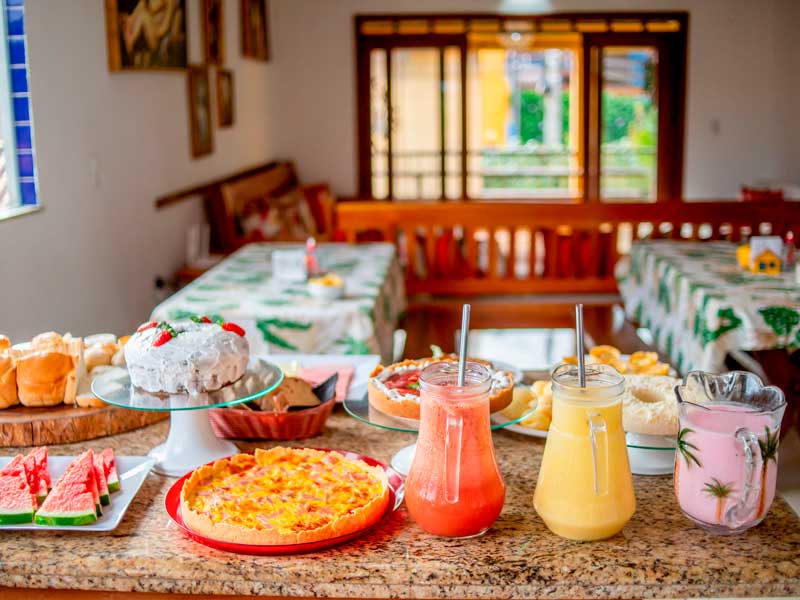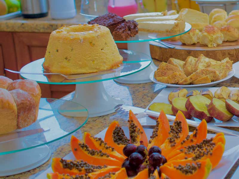 Desperte seus sentidos com o café da manhã encantador da Pousada Flor do Arraial, no coração de Porto Seguro. Delicie-se com uma variedade de frutas frescas, pães quentinhos e bolos caseiros preparados com carinho.